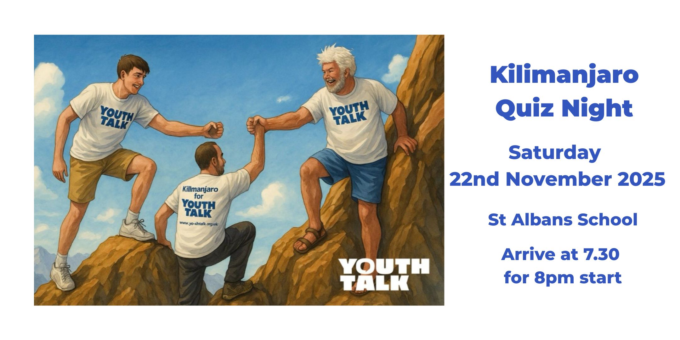 Come and join Jim, Aaron and Ben for a Quiz Night – supporting the team travelling to Mt. Kilimanjaro for Youth Talk next February.