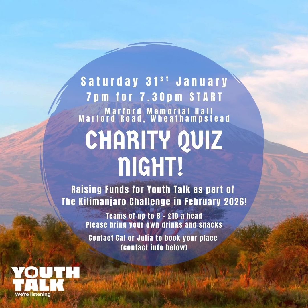 An amazing group of 24 courageous supporters aiming to summit Mount Kilimanjaro, Africa's tallest mountain, in aid of Youth Talk. Look out for information in our newsletters, and if you would like to sponsor the team, please head over to https://www.justgiving.com/team/trek-kilimanjaro-2026